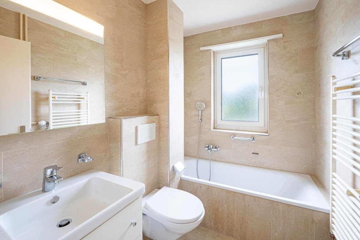 - Helles Badezimmer mit Badewanne, WC und Fenster