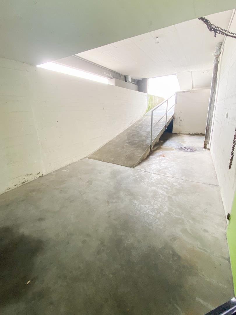 Die Räumlichkeiten sind direkt über eine offene Rampe (2.50 m hoch) zugänglich und erstrecken sich über das gesamte Untergeschoss mit einem separaten Eingang.