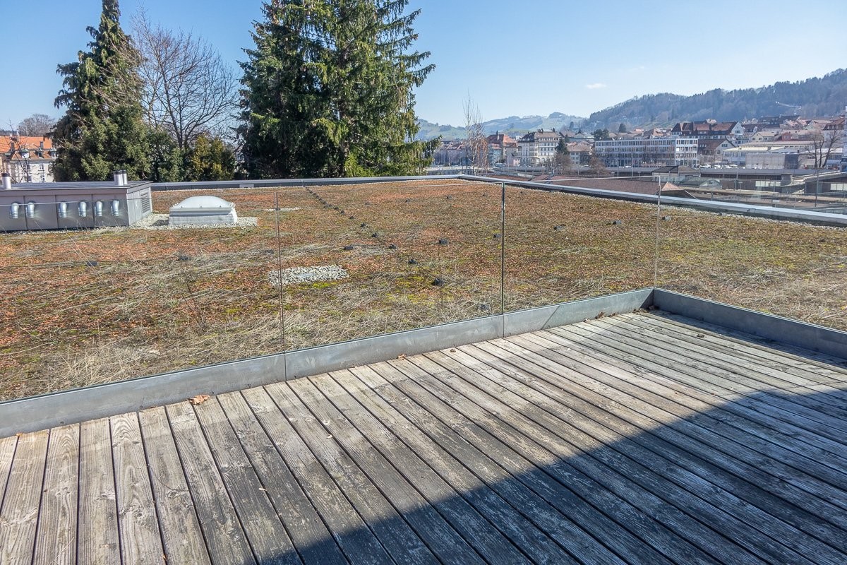 Diese moderne Attikawohnung überzeugt durch ihren grosszügigen Grundriss, hochwertigen Ausbau und die attraktive Lage in der Nähe des Zentrums.