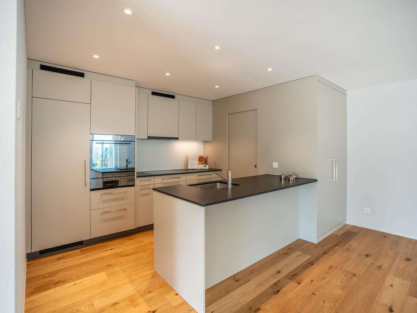 + Grosszügiger Wohn- / Ess- und Kochbereich mit Zugang zum Balkon und zum seitlichen Sitzplatz