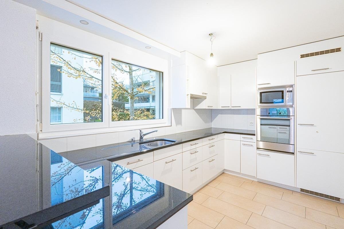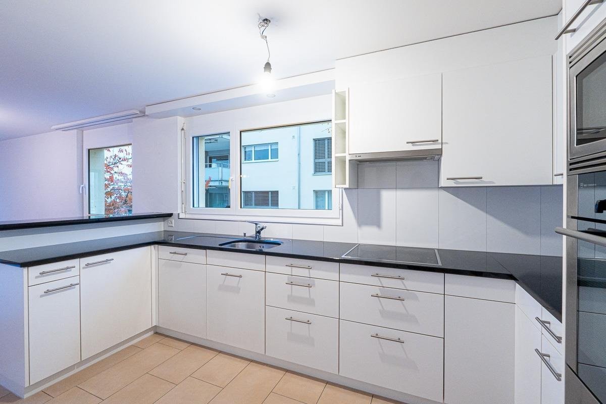 Der Innenraum der Wohnung ist modern und hochwertig ausgestattet. Die gepflegte und offene Küche lässt keine Wünsche offen. Sie verfügt über moderne Geräte und viel Stauraum für Geschirr und Küchenutensilien. Zudem gibt es einen praktischen Abstellraum. Die Zimmer sowie Badezimmer sind grosszügig geschnitten. Die Wohnung verfügt über eine eigene Waschmaschine.