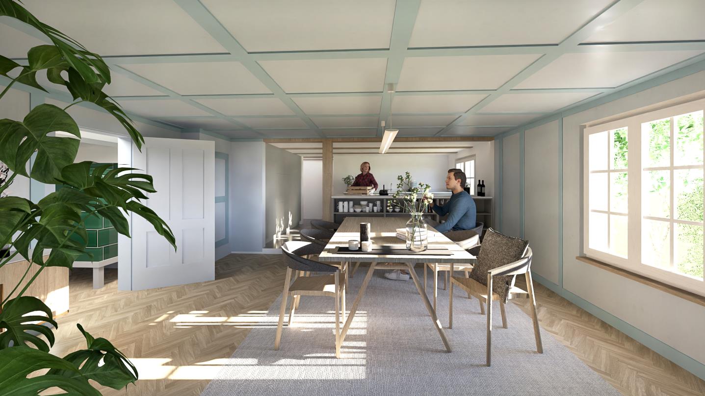 - Rückbau der unbelüfteten Nasszelle und Einbau einer Gäste-Toilette mit Waschmaschine/Trockner im Erdgeschoss