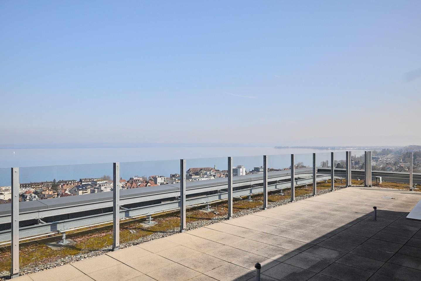 Ein besonderes Highlight ist die grosszügige, umlaufende Dachterrasse zur Mitbenutzung, welche zusätzliche Aufenthaltsqualität sowie eine einzigartige Aussicht bietet.