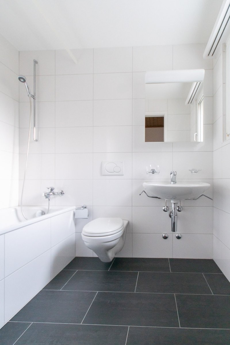 - Plattenbeläge in Küche und Badezimmer