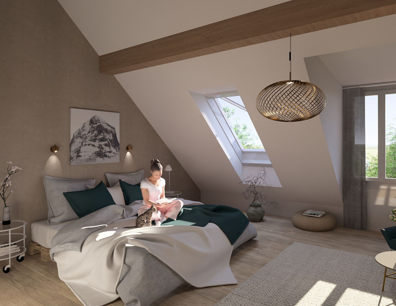 Auf der Südseite erhält jedes Haus eine private Aussenfläche mit einem vorgelagerten Obstgarten aus regionalen Hochstammbäumen.
