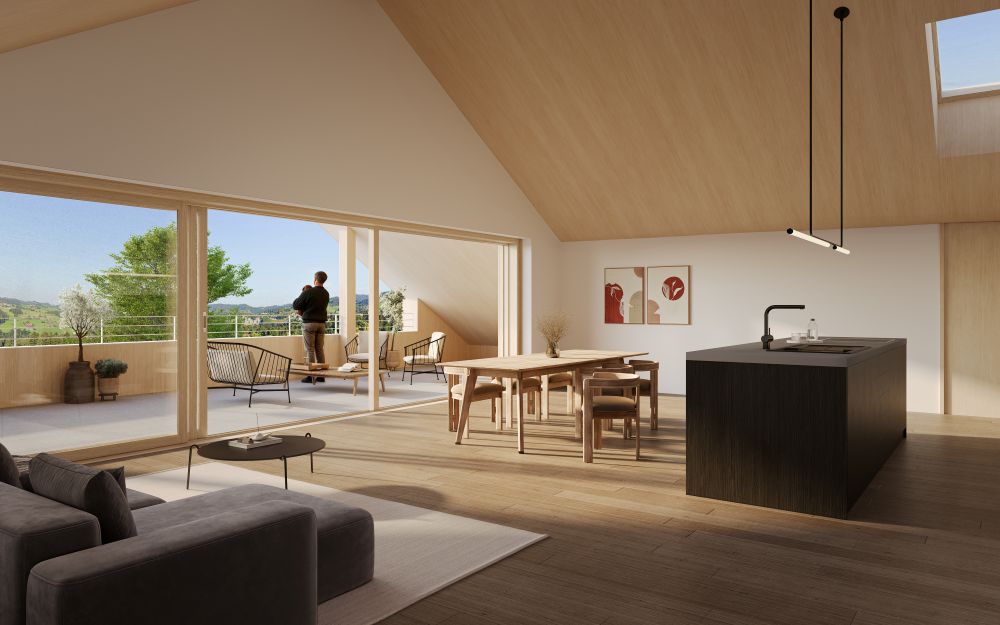 Das Projekt umfasst eine Baute mit zwei Geschossen und einem Dachgeschoss. Es entstehen fünf Wohneinheiten sowie eine gemeinsame Garage.